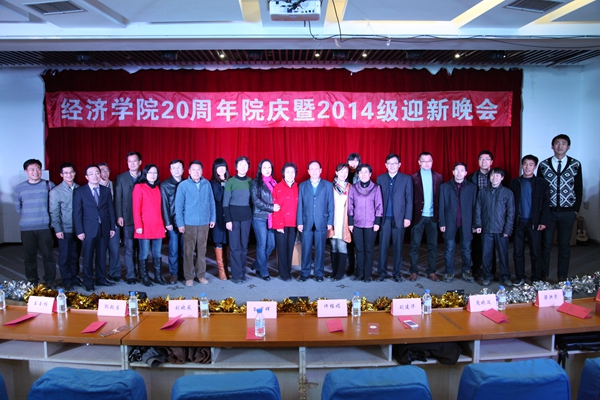 11月5日18:00,“经济学院20周年院庆暨2014级迎新晚会”在1101活动室盛大开幕。本次活动邀请到了首任院长孙宇晖教授、原副院长许桂娟教授、原教研室主任刘晓薇教授、第二任院长刘建华教授、第三任院长(现任校马研中心主任)郭殿生教授、当代经济研究编辑部副主任(我院硕士生导师)梁洪学研究员、校发展规划与学科建设办公室副主任(我院硕士生导师)魏旭教授、当代经济研究编辑部《资本论》编辑室主任(我院硕士生导师)黎贵才副研究员、法学院团委书记(毕业生代表)赖广添、国际交流学院团委副科级干事(毕业生代表)姜福奇等嘉宾;学院党政领导、全体教师、全体在校生出席了晚会。会场充满着回忆、感动和期冀,老中青三代经济学人和经济学莘莘学子欢声笑语、载歌载舞,充分营造了经济学院一家亲的温馨氛围。