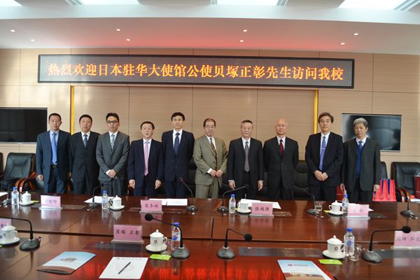 在综合楼第一会议室,校长宋冬林、副校长张越杰和日本驻华大使馆公使贝塚正彰等进行了友好会谈,会谈由副校长张越杰主持。
