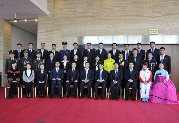 国家副主席李源潮接见张爽(二排左六)等青年代表