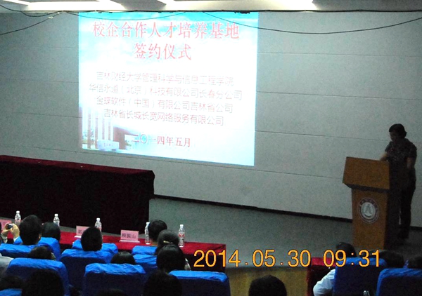 本网讯(管信学院 供稿)5月30日,管信学院与华信永道(北京)科技有限公司(以下简称“华信永道”)长春分公司、金蝶软件(中国)有限公司(以下简称“金蝶软件”)吉林省分公司、吉林省长城长宽网络服务有限公司(以下简称“长城长宽公司”)实习与就业专场招聘会暨校企合作签约仪式在第一教学楼1101报告厅隆重举行。华信永道长春分公司总经理付琦,金蝶软件吉林省分公司经理李海多,长城长宽公司综管总监赵金玲、经理周翠涛、人力资源部经理万颖,长春欧亚集团股份有限公司欧亚商都人力资源部经理李明瑶,Beat365副校长杨春梅教授、就业指导中心主任马晓旭、管信学院院长王丽敏教授、党委书记谷连辉老师、党委副书记丛彪老师、学院部分教师及2010级、2011级学生出席了本次签约仪式。签约仪式由学院计算机系主任李艳东老师主持。