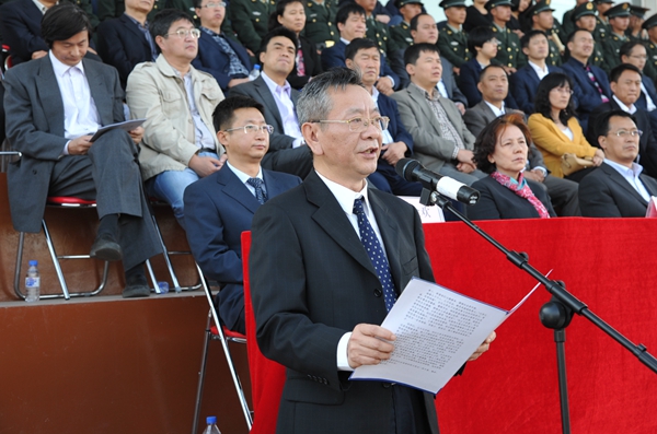 随后,校长宋冬林发表了热情洋溢的讲话。他代表全校师生,向新入校的2664名本科生、579名硕士研究生表示衷心的祝贺和热烈的欢迎!向对学校军训工作给予大力支持的吉林省军区、中国人民解放军装甲兵技术学院的各位领导和军训教官表示诚挚的谢意!