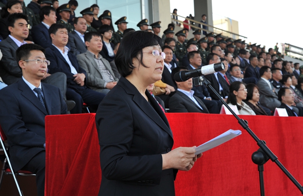 副校长杨春梅宣读了“军事课先进个人”表彰决定,表彰在军事课上表现优异的教官及学生,并希望全体新生向先进个人学习。