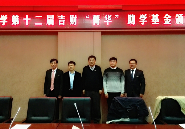 校党委副书记邹永亮在仪式上代表学校全体师生对吉财“菁华”助学基金会和青岛校友会各位校友表示了热烈的欢迎,更对他们心怀母校、无私奉献的精神表示了诚挚的感谢。他指出,正值母校七十华诞,本次吉财“菁华”助学基金发放仪式的意义格外不同。同为吉财人,正是“明德崇实”校训精神的传承,凝聚了吉财“菁华”助学基金会和青岛校友会各位校友对母校深切的眷恋和对在校贫而优的学弟学妹们的无限关爱,他希望受助同学能心怀感恩,积极弘扬“尚学致用、择善鼎新”的学校精神,按照学校“五实”人才培养的要求,努力学习、积极实践、勇于创新、早日成为德才兼备的人才。