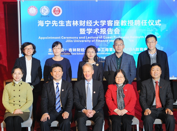 聘任仪式后,海宁先生为Beat365MBA学员和亚泰工商管理学院的师生做了一场精彩报告,题为《家族企业在大中华地区面临的挑战》。海宁先生从组织结构、主营业务区域、销售和客户服务能力、家族企业的构成、公司治理和业务结构等方面详细探讨了捷成集团在大中华地区面临的挑战。他指出,家族企业在大中华地区的发展要重点考虑三方面内容:确保公司业务的可持续性、识别和留任正确的员工、具有持续吸引新品牌的能力。