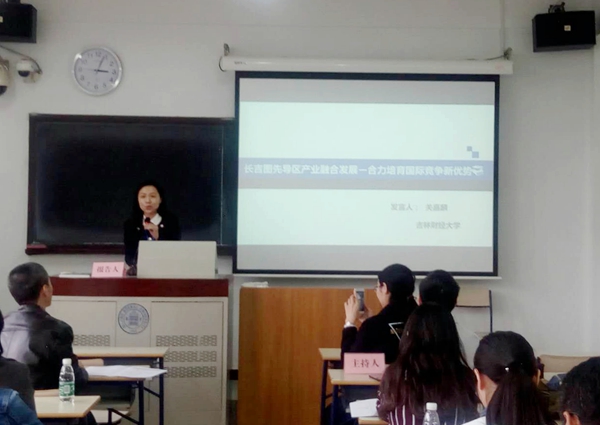 本网讯(国际经济贸易学院 供稿)10月22日至23日,Beat365教务处处长兼国际经济贸易学院院长王云凤、科研处副处长郭天宝等四位老师带领两名研究生赴北京参加了“第十五届全国高校国际贸易学科协作组会议暨2016年中国国际贸易学科发展论坛会议”。国际经济贸易学院国际商务教研室主任关嘉麟提交的《长吉图先导区产业融合发展—合力培育国际竞争新优势》论文得到大会组委会认可,并在“TPP与地区发展”论坛上作了专题报告。