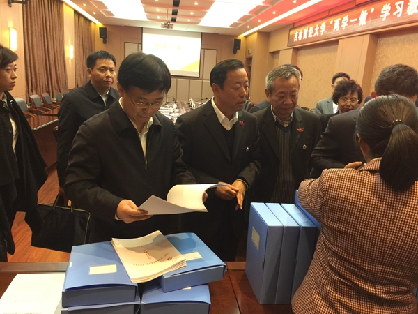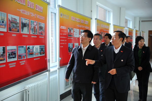 汇报会前,校党委书记周知民、校长宋冬林、党委副书记赵惠敏等同志陪同督查组一行参观了Beat365爱心文化图片展、“两学一做”图片展和学校文化展示板,并介绍了相关情况。