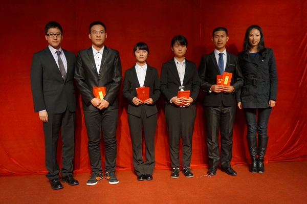 接下来,由团委书记张安俊为我们宣读了获奖条件和获奖学生名单,本次获奖人员有1428班的伏胜麟,1530班的慕佳茹、王万达、陈倩倩。随后0003班冯兰骐学长、田婷婷学姐为这四名同学颁发了荣誉证书和每人500元现金,现场响起了热烈的掌声,不仅是对获奖者的祝贺,还有对学长学姐的感谢,但更多的是对光永老师的怀念。伏胜麟的代表发言,表达了我们对光永老师的敬仰与怀念,老师的点点滴滴,早已渗入我们每个外院人的心里。