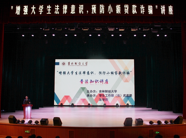 本网讯(学工处 供稿)为进一步增强大学生法律意识,预防校园小额贷款诈骗。11月16日下午,学生工作部(处)武装部联合法学院邀请北京盈科律师事务所长春分所的年青律师在学校多功能中心礼堂作了“增强大学生法律意识,预防小额贷款诈骗”的普法讲座。各学院负责资助工作的辅导员老师和600多名学生代表参加,讲座由学生工作部(处)武装部副部(处)长兼学生资助管理中心主任赵彦双主持。
