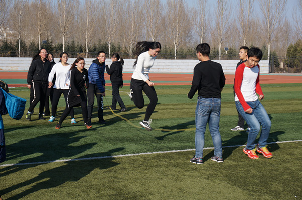 在比赛开始之前,参赛选手们就已经提前来到操场,做着充分的准备工作。比赛开始后,首先进行的是踢毽子比赛,每班出五人轮流踢,毽子落地则换人,五人所踢总数作为最终成绩。参加此项目的同学要求具有较好的保持平衡的能力,只见上场的选手们都在尽力调节好节奏和高度,毽子在他们的控制下划出一道道优美的弧线,精彩的表现赢得了大家的掌声和欢呼声。最终日语16032班获得了此项目的第一名。然后是限时三分钟的跳大绳比赛。同学们个个动作流畅,跳跃自如,挥动的长绳也像是在空中飞舞,起伏之间洋溢着运动的气息。日语16032班在这个项目中依旧表现突出,取得了最终的胜利。接下来进行的第三项比赛是呼啦圈过人,要求十人手拉手站成一排,手不可松开,通过自身肢体活动把呼啦圈传递给下一个同伴。在此环节比赛中,大家默契配合,动作敏捷,周围观众们也是纷纷为他们的表现拍手叫好,现场气氛推向高潮。在一番激烈的比拼后,英语1631班一举取得第一名。最后一项比赛是面对面夹球接力,每班十二名同学两人一组,接力传球,根据所用总时间多少判定比赛成绩。选手们都小心翼翼地控制着球,默契的配合、协调的动作和认真的神态博得观众们的阵阵掌声。最后,英语1528班同学用时最短,获得第一名。