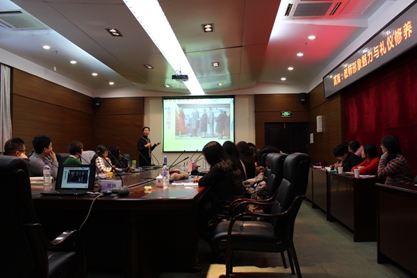 高岚教授结合自身丰富的教学科研工作经验与体会,从“学习的四个目标”、“教师职业礼仪形象定位、“教师仪态形象与工作礼仪”、“教师职场仪表形象”四个方面对“教师形象魅力与修养”这个专题进行了很好的诠释和精彩的演绎。让大家掌握规则、养成良好习惯,促成行为突破,做有魅力的教师。高教授从日常握手礼仪开始切入,通过名人及自身教学的实例,让大家意识到礼仪、形象的作用和魅力。她还在现场带领全体新教师进行了标准的握手示范与提高声音魅力技巧训练。高岚教授强调教师的名片效应可以吸引学生,帮助提高教学吸引力和教学效果,她强调新教师应特别重视“第一次课”,通过提升视觉形象、声音形象、语言形象进一步提高自身形象魅力,建立自己的“名片”。工作及社交中,要表现出儒雅风范的站姿形象、坐出优雅风度、走出自信魅力、始终保持微笑。