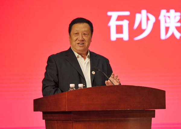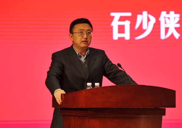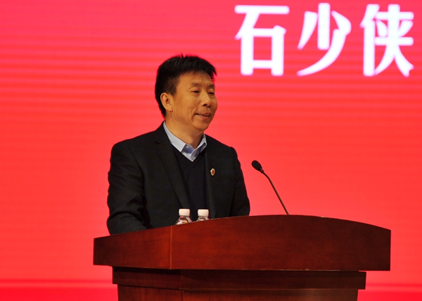 石少侠教授在聘任仪式讲话,他首先表示很荣幸受聘为法学院名誉院长,并且承诺将会在聘任期间与法学院共同成长进步,明确责任与义务,全心全意发展法学教育事业,搞好科研;与法学院全体教师努力奋斗,与法学院全体学生深入交流。