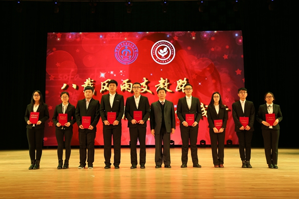 本网讯(管理科学与信息工程学院 供稿)12月14日,管理科学与信息工程学院在校多功能学术中心举办“八载风雨支教路,一颗爱心伴我行”——2008-2016年张爽义务支教小分队支教汇报暨表彰大会。出席本次大会的嘉宾有校党委书记周知民、校纪委书记岳宏、副校长孙长智,学校相关职能部门领导,管信学院全体师生及各学院青年志愿者代表。