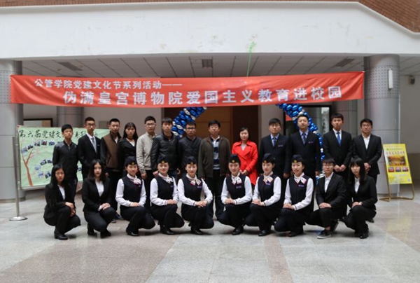 活动伊始,公共管理学院的学生表演了诗朗诵《中国梦》,表达了对祖国美好的祝愿和期待。紧接着,由伪满皇宫多位出色的讲解员组成的爱国主义宣讲团,以精彩的文艺表演和感人肺腑的讲解,再现历史的瞬间。从辛亥革命的顽强奋斗到五四运动的亢奋激昂,再到抗日战争的艰苦卓绝,共表演了8个节目,包括舞蹈《百年辛亥》,话剧《五四精神》,表演唱《松花江上》,话剧《苦难劳工》,情景故事《民族英雄赵一曼》,舞蹈《桃花谣》,配乐故事《中国母亲》,手语唱《国家》。使在场同学们真切的感受和融入到了那个国家面临生死存亡,人民饱受蹂躏的年代,向同学们展现了中国人民代代相传的在血液中绵延流淌的爱国主义精神。其中最令人难以忘怀的画面是英雄母亲赵一曼的革命事迹,为了反满抗日她毅然抛下年幼的儿子,在九一八事变后秘密来到东北坚持抗日斗争。面对日寇她横眉冷对,留给儿子的遗书却充满感情,读来催人泪下。她写道:“母亲对于你没有能尽到教育的责任,实在是遗憾的事情。母亲因为坚决地做了反满抗日的斗争,今天已经到了牺牲的前夕了。希望你,宁儿啊!赶快成人,来安慰你地下的母亲!在你长大成人之后,希望不要忘记你的母亲是为国而牺牲的!”表达了自己为大家不为小家的革命情怀和对儿子深切的爱,在场的同学们看到这里都眼含热泪,内心受到很大的震撼。最后一个节目是公共管理学院的学生与宣讲团合作演唱了《国家》,表达了对家的眷恋和对祖国的热爱,以及对祖国繁荣昌盛的由衷祝愿。活动后,学院师生和伪满皇宫博物院宣讲团工作人员合影留念。