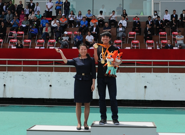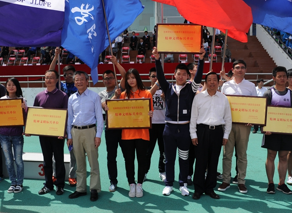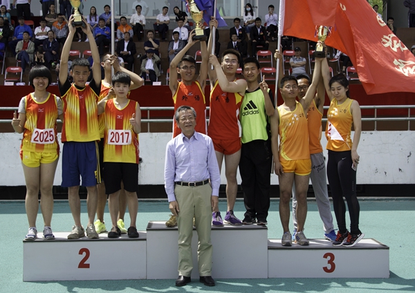 5月20日上午11:30,运动会闭幕式正式开始。校党委书记周知民、校长宋冬林、副校长丁堡骏、副校长张新宇、校纪委书记江风艳分别为获奖代表队颁发了奖杯。