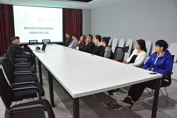 为充分发挥企业与高校在人才培养、实践就业、创业孵化等方面的合作优势,整合广告传媒产业资源,搭建高校与行业的互通平台,通过为高校学生提供公益教学、培养与行业接轨的实战派技能型人才,创建与市场零距离的“产—学—研—创”一体化人才教育培养体系,新闻与传播学院与长春吉广传媒集团有限公司达成《教学科研实习就业创业基地》合作协议。双方表示将建立长久合作关系,并就合作的具体内容进行了商讨。