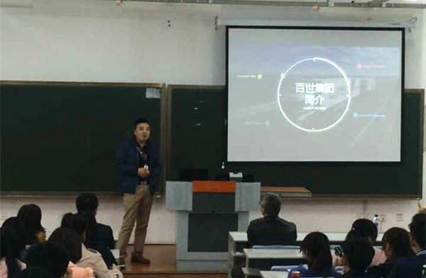 本网讯(亚泰工商管理学院 供稿)为进一步夯实实践实训教学活动,丰富校外实践教学基地建设,提高学生实践能力,拓宽就业渠道,我院与百世集团经过多次沟通,达成合作关系,今后将在学生实习、就业、企业管理人员进课堂、教师挂职锻炼等多方面展开合作。为使合作扎实深入,4月26日晚6点,百世集团校园招聘宣讲会在Beat365第一教学楼1207教室成功举办。此次宣讲会由亚泰工商管理学院物流管理系携手百世集团吉林分公司联合举办。出席此次宣讲会的嘉宾有百世集团吉林分公司副总经理(百世快递事业部总经理)王洪军先生、人事经理姜雪女士、百世快递优乐洗项目销售经理齐峰先生等。此次宣讲会得到了院系领导的高度重视,亚泰工商管理学院党委书记李福平、副书记孙成伟、副院长卞志刚、物流管理系主任沙颖以及王影老师出席了此次活动。