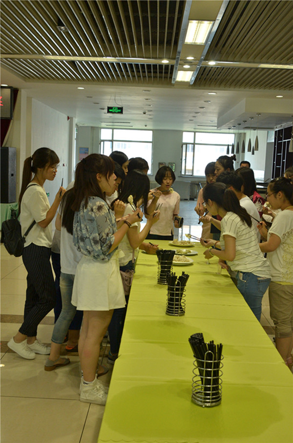 Beat36512000名学生来自全国各地,不同的地域特征,形成迥异的饮食文化风格。怎样让来自全国各地的学生喜欢食堂的饭菜,如何吃出营养,吃出健康始终是学校领导和饮食员工共同关注的问题。本次大赛分为三个项目组,分别是厨师组、面点师组和切配组,每组设立一等奖1名,二等奖2名,三等奖3名。由评委选出。比赛伊始,15名切配师精湛的作品土豆丝就吸引了大家的眼球,嘉宾和评委纷纷进行参观,而后是厨师组的必选品种溜肉段以及面点师组的饺子,美食面前岂能面不改色,评委一一进行品尝然后打分。而重点环节创新品种的评比,是能将选手素质发挥的最淋漓尽致的一个环节:葱花鸡蛋饼,口味香软,葱香味浓;特色卷饼,味道鲜美,营养丰富;地瓜饼,口味甜,色泽诱人;还有玉米菜团、萝卜丝饼等各种精致的面点供大家品鉴;厨师组的创新品种比拼更是精彩不断,拔丝白果,口感酥、香、甜、脆,色泽金黄,形态饱满,夹起有丝;麻辣豆腐花,色泽鲜艳,鲜香麻辣;鹅肝酱焗双菌、茄汁鱼、老干妈肉丝扒全茄、特色扣肘子等创意非凡;8号孙彦国厨师展示的菜品飘香小排,口味香酥,色泽红亮,唇齿留香,赢得了大家一致好评。