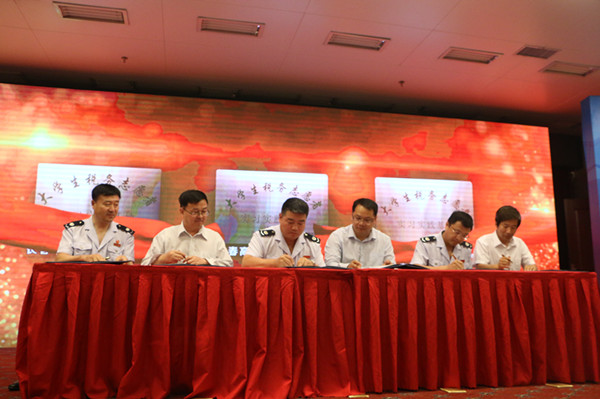 启动仪式过程中税务学院党委书记田磐石与长春市净月区国税局局长王勇共同签署了合作和实习基地协议,税务学院学生志愿者韩旭作为四所高校志愿者代表进行了发言,最后校党委副书记邹永亮与省市国税局领导以及其他高校代表共同点亮了启动仪式水晶球。