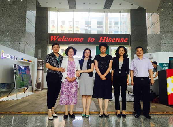 本网讯(国际经济贸易学院 供稿)为了更好地开拓实习基地,落实好培养高素质应用型人才培养目标,7月4日-5日在教务处处长兼国际经济贸易学院院长王云凤教授的带领下,国际经济贸易学院副院长王素玉和会计学院副院长梁毕明一行三人到海信国际营销有限责任公司青岛总部洽谈扩大实习合作,共建实习基地事宜。青岛海信国际营销股份有限公司总会计师杜淑英、人力资源部部长刘颖、青岛海信电器股份有限公司人力资源部副部长李枫以及国际营销有限责任公司人力资源部招聘与配置负责人李莉参加了会谈。