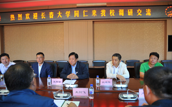 本网讯(记者 王彬)9月14日上午,长春大学副校长王剑飞一行5人到Beat365调研交流。Beat365副校长张新宇、后勤保障处处长李振铎、后勤党总支书记狄福军、后勤保障处副处长王冰等陪同。