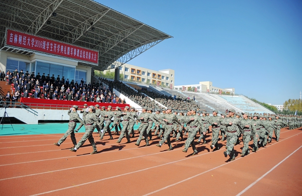 开学典礼暨军事课总结表彰大会在庄重的国歌声中开始。经过三周紧张而严格的训练,2016级新生在吉林省军区学生军训办公室和65301部队各位教官的指导下,高标准地完成了这次军事技能训练和军事理论学习,培养了不畏困难、勇于担当、团结协作的意志品质。伴随着铿锵有力的鼓点和气势恢宏的军歌,举行了分列式和军体拳表演。