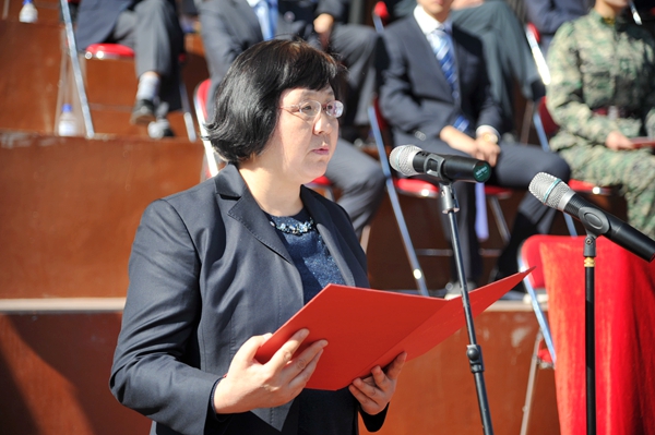 接下来,副校长杨春梅宣读了“军事课先进个人”表彰决定,表彰在军事课上表现优异的教官及学生,并希望他们戒骄戒躁,再接再厉,希望全体新生向先进个人学习。