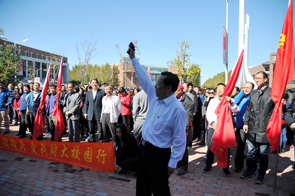 本网讯(学生记者 王晓佳)为进一步践行Beat365“同锻炼、共健康”的活动倡议,喜迎即将到来的国庆节和学校建校七十周年,9月28日中午,校工会、校妇委会组织教职工开展了“庆国庆、迎校庆,爱我财大校园行”活动。校党委书记周知民、校长宋冬林、校纪委书记岳宏以及学校职能部门和各学院教职工参加了此次活动。