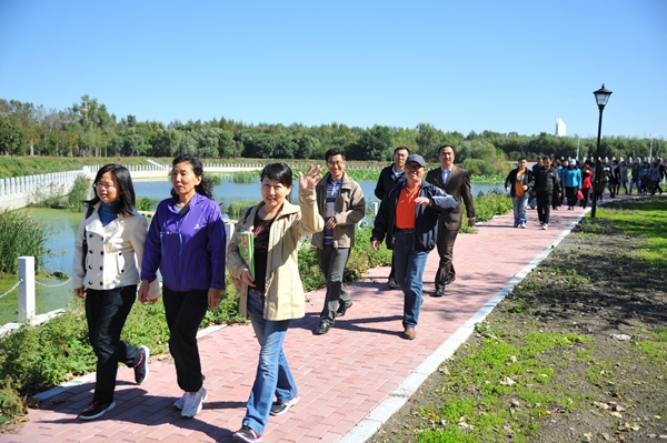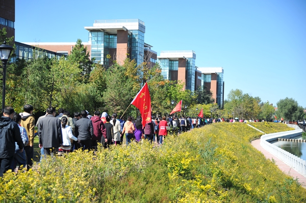 中午12时,参加本次校园行活动的教职工在综合楼前集合完毕。在热烈的气氛中,校党委书记周知民打响了徒步行活动的发令枪,正式开始了财大校园行活动。活动中,大家跟着向导沿着既定的路线开始行走,领略校园的美景。时值九月,秋高气爽,在一个多小时的活动中,教职工在健步走的同时,纷纷感叹于财大校园的秀美。这次校园行活动,既是一次运动的过程,也是再次深入认知校园,爱我财大的过程。在活动中,大家对美丽的校园和绿化美景倍感自豪,同时感觉到了锻炼的作用和意义。活动使大家增强了主人翁意识,“财大是我家,人人爱护她”的理念得到了进一步的加强。