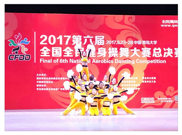 本网讯(体育部 供稿)9月22日至9月29日,由国家体育总局体操运动管理中心、中国健美操协会、全国全民健身操舞推广委员会共同承办的“2017第六届全国全民健身操舞大赛总决赛”在青岛大学举行。