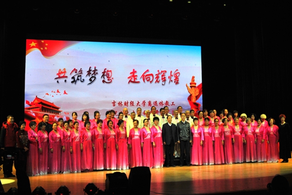 本网讯(离退休工作处 王庆国)10月24日下午2时,离退休党总支在多功能学术中心举办了“共筑梦想•走向辉煌”庆祝党的十九大胜利召开文艺演出。演出内容包括器乐合奏、诗歌朗诵、舞蹈、大合唱、小合唱、独唱等共15个节目。参加演出的既有老领导、老教授,也有退休不久的教工,最大的年龄87岁。演出是向党的十九大的献礼,参演人员怀着对党的无限热爱和对新时代的美好憧憬,把演出一次次推向高潮,整台节目,热情饱满、情感奔放,充分展示了老有所为、老有所乐的桑榆情怀;充分表达了老同志们不忘初心牢记使命的坚定信念和紧跟党中央走向新时代的壮志豪情。校党委书记周知民,校党委副书记、校长宋冬林,校党委副书记赵惠敏,校党委副书记邹永亮和500多名师生观看了演出。这次演出得到师生和离退人员的普遍好评和称赞,使参演人员深受鼓舞和激励,并为以后的演出积累了可资借鉴的经验。(审核人 李印俊)