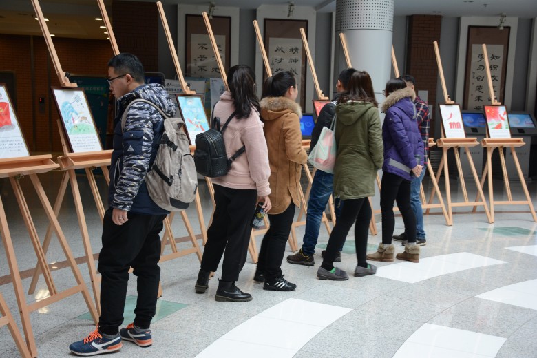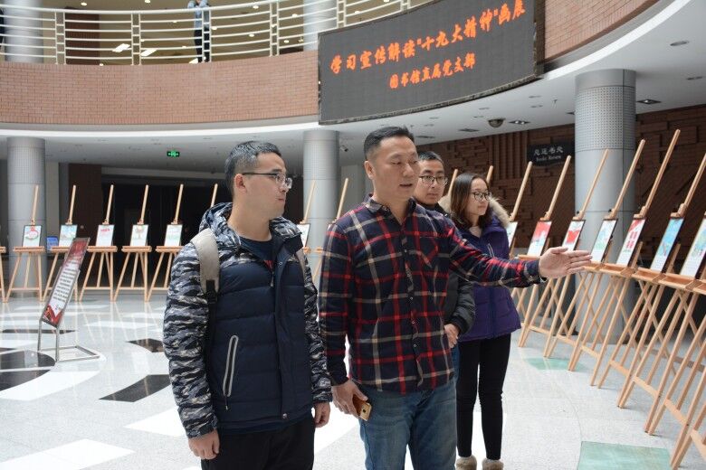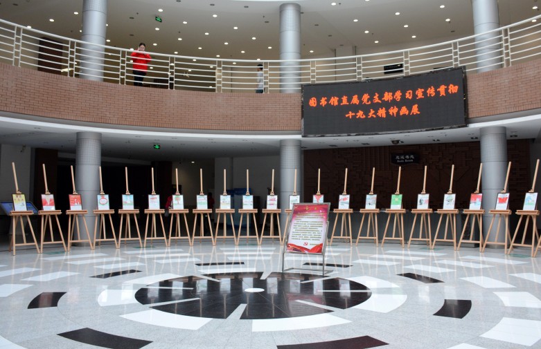 本网讯(图书馆 供稿)为深入学习宣传贯彻党的十九大精神特别是习近平新时代中国特色社会主义思想,教育引导全体党员自觉把思想和行动统一到党的十九大精神上来,经过充分准备,图书馆直属党支部于11月13日,在图书馆二楼大厅举办“漫话十九大”画展,“党的十九大主题”、“两个一百年奋斗目标”、“56个民族要像石榴一样紧紧抱在一起”、“让中国人的饭碗牢牢地端在自己手里”一幅幅生动画面,从经济、文化、军事、民生、环保、党建、科技、外交、等方面展示了十九大的精髓。图书馆的党员和工作人员首先参观了画展,边观展边谈感想。很多学生也驻足观看,并认真观看每幅作品的文字注解,画作者马长余老师也在现场为学生讲解,宣传十九大精神,学生李志赛观展后兴奋地说:“马老师的漫画形象直观、简单易懂,对于我们学习领会十九大精神起到了催化剂的作用,我们很喜欢!”通过画展促进全体党员不断深化认识,立足本职,爱岗敬业、以实际行动为全面建成小康社会贡献力量。欢迎全校师生参观,并提出宝贵意见。(审核人 杨永生)