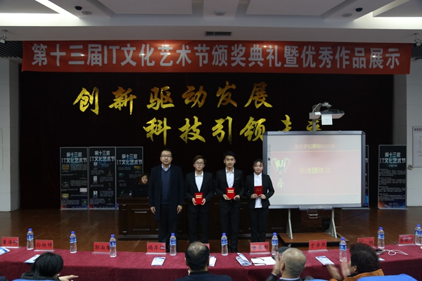 本网讯(管理科学与信息工程学院 供稿)为进一步加强学风建设,建设优良学风,增强学生的专业实践能力和创新能力,管理科学与信息工程学院举办第十三届IT文化艺术节。本次文化艺术节历时近40天,有近500名学生参加本次活动,在学生中掀起了努力学习和实践计算机知识的良好氛围,形成了奋发向上,乐学、勤思、求实、进取的优良学风。文化节于11月16日成功闭幕,参加闭幕式的嘉宾有学生工作处武装部副处长黄建东老师、招生就业处副处长竭岸杨老师、教务处副处长刘锐老师及管信学院师生代表。