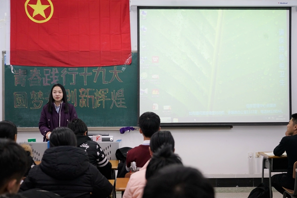 本次主题团会不仅让同学们学习、了解了十九大精神,明确了身为大学生所应奋斗的目标、责任和历史使命,更有利于同学们树立正确的人生观与价值观,也对自己的人生规划起到了积极的作用。同学们纷纷表示,在今后的学习和生活中,一定不忘初心,牢记使命,登高望远,砥砺前行,为实现中华民族伟大复兴的中国梦奉献自己的青春和力量!(审核人 曲晓东)