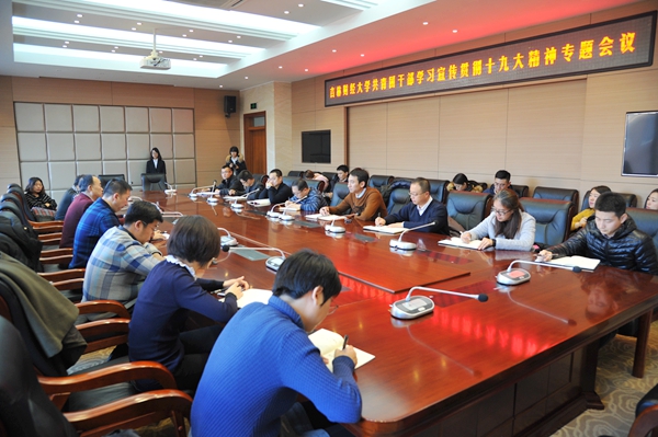 首先,校党委宣传部部长、团委书记庞长亮传达了学校党委常委会审议通过的《Beat365中文官方网站认真学习宣传贯彻党的十九大精神实施方案》、《关于成立Beat365中文官方网站习近平新时代中国特色社会主义思想研究中心的决定》、《关于组建Beat365中文官方网站学习宣传贯彻党的十九大精神宣讲团》、《关于组建Beat365中文官方网站学习宣传贯彻党的十九大精神辅导员宣讲团的通知》和《关于成立Beat365中文官方网站“新时代传习所”的通知》,对学校共青团该如何学习宣传贯彻党的十九大精神进行了工作部署。
