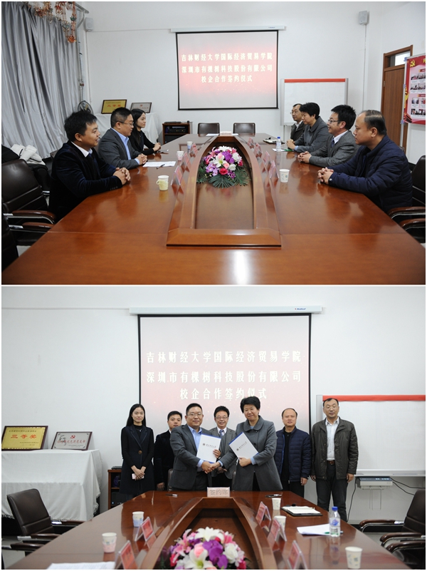 10月27日,深圳市有棵树科技股份有限公司人力资源总监李治业、公司人力资源部校企合作负责人钱由兴、人力资源部李慧一行三人到国际经济贸易学院会议室洽谈校企合作事宜,并签订了校企合作协议。国际经济贸易学院党总支书记彭栋春、副院长王素玉、副书记赵钺等参加了洽谈签约会。