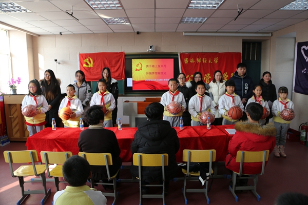 40分钟的授课之后,各个支教小分队和参加活动的孩子们来到玉潭小学四楼录播会议室开展对接互赠仪式。行政1512班团支书张博主持本次捐赠仪式。学院团委书记孙之光老师代表学院发言,孙老师指出玉潭小学爱心支教活动已走过12载,玉潭小学师生的精神面貌日新月异。习近平总书记在“十九大报告”中提出对青年“有理想、有本领、有担当”的希冀,中国梦要靠一代代青年的接力奋斗实现,今天,在玉潭小学这些孩子们身上看到了希望,看到了力量看到了祖国未来的繁荣富强。公共管理学院与玉潭小学共建的爱心支教活动是感恩的接力,是爱的传承,希望这项活动历久弥新。