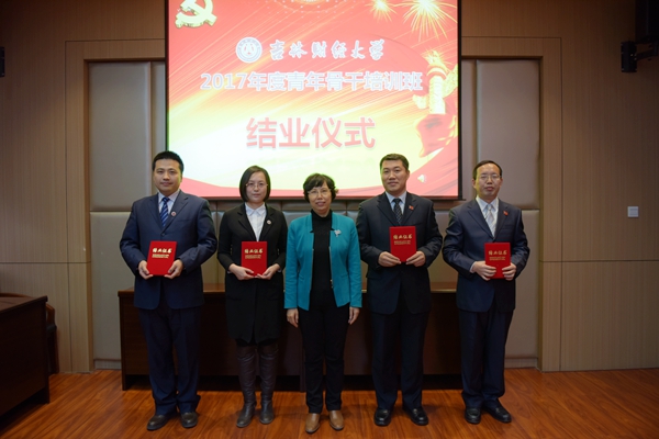 随后,校党委副书记赵惠敏作了总结讲话。她说,2017年度青年骨干培训班学员在学习培训中,精神饱满、精诚团结、配合默契,组织纪律性强,充分展示了吉林财大青年干部的良好精神风尚,为学校收获了良好的声誉。