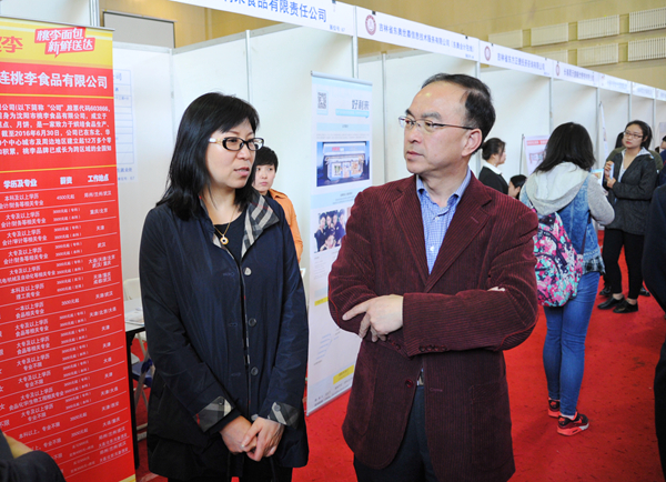 本网讯(学生记者 邵晓晨 周怡 摄影 楚汉杰)4月15日,由吉林省教育厅主办、Beat365承办的“吉林省2017届财经类毕业生春季供需洽谈会”在大学生活动中心隆重举行。校党委副书记邹永亮、省教育厅高校学生处处长陈梅、省高校毕业生就业指导服务中心主任郑志宏及副主任张旭光等莅临此次招聘会并进行了指导。