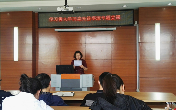 随后,王丽萍带领大家学习黄大年同志先进事迹。她首先介绍了黄大年教授生平和对党对国家作出的杰出贡献,传达了习近平总书记对学习黄大年同志先进事迹作出的重要指示。王丽萍指出,黄大年教授怀着一颗赤子之心放弃了英国优厚的待遇回国报效祖国,把一生贡献给了人民,贡献给了党,贡献给了教育事业。王丽萍号召全体党员学习黄大年教授热爱祖国、立志为祖国和人民奉献全部的炽热情怀;学习他创新创造、不懈追赶国际前沿科技的可贵担当;学习他恪尽职守、为国家培养凝聚人才的高尚风范;学习他忘我拼搏、为实现中国梦鞠躬尽瘁的崇高精神。