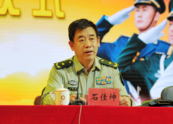 吉林省军区副司令员、征兵工作领导小组副组长石佳坤在仪式上致辞。他指出,虽然我们生活在一个和平的年代,但仍应时刻考虑到国家的安全问题。保卫国家的接力棒已经传到了当代大学生的手中,征兵工作也迫切的需要有学历、有志气的青年积极响应。他强调,军队生活有苦也有泪,但军营却是一所大学校,也是一个大熔炉,它可以培养优秀的生活习惯,锻造坚毅的品格,是当代大学生建功立业,砥砺人生的好地方。最后,他指出了参军的优惠条件与优先政策,进一步鼓励优秀大学生到军队书写激昂的青春。