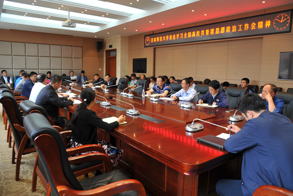 会上,校党委副书记邹永亮对全国高校共青团思想政治工作会议精神进行了传达和解读。他指出,习近平总书记系列重要讲话精神是做好新形势下高校共青团思想政治工作的根本遵循。随后,他传达了国家副主席李源潮讲话中强调的六个深刻认识:一是要深刻认识高校肩负着培养德智体美全面发展的社会主义事业建设者和接班人的重大任务,必须坚持正确的政治方向;二是要深刻认识高校思想政治工作关系高校培养什么样的人、如何培养人以及为谁培养人这个根本问题,履行好立德树人职责,更好把高校师生凝聚在党的周围;三是要深刻认识高校思想政治工作从根本上说是做人的工作,必须围绕学生、关照学生、服务学生,让学生成为德才兼备、全面发展的人才;四是要深刻认识用社会主义核心价值观教育学生,引导他们扣好人生的第一粒扣子,这是高校思想政治工作的使命所在,把社会主义核心价值观教育贯穿于高校办学育人全过程;五是要深刻认识推动高校思想政治工作改革创新,要遵循思想政治工作规律,遵循教书育人规律,遵循学生成长规律;六是要深刻认识必须加强和改善党对高校思想政治工作的领导,坚持“党建带团建”制度。