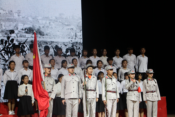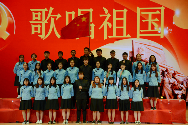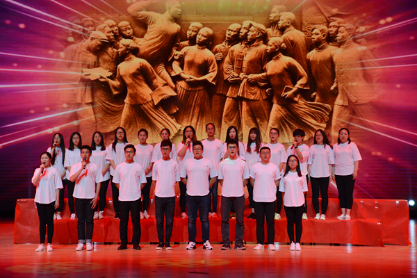活动在庄严的国歌声中拉开帷幕。信仰是指引行动的明灯,首先由学院党委副书记丛彪老师带领全体党员重温入党誓词,铿锵的誓言见证党员们对党的忠诚与热爱。随后同学们用悠扬的歌声、深情的诗词、感人的话剧、美丽的舞蹈,共同赞颂我们伟大的党,抒发着师生们的爱国情怀。《中国少年强》表达了当代大学生继承革命前辈的接力棒,投身祖国发展并为祖国做贡献的责任与使命;《老兵》再现了革命先烈们为了祖国和人民浴血奋战,前赴后继的革命精神;《回声嘹亮》讲述了1921年7月中国共产党成立,自此中国革命有了坚强的领导核心,中国人民有了可信赖的组织者和领导者,确证了中国革命的胜利;《红色光辉》歌唱壮丽的祖国河山,表达了对祖国的热爱;《盛世中国》展现了改革开放以来,在党的领导下,我国在各个领域取得的辉煌成就;《八千里路云和月》赞扬了东北抗日联军在民族大义面前舍小家、为大家的英雄主义气概;《党在我心,明天会更好》展望了在党的领导下祖国未来的美好愿景;《凯歌》讲述了中国人民积极参加抗美援朝志愿军,保家卫国的故事,最后由学生会主席团成员为大家带来歌曲《光荣啊,中国共青团》《五月的送别》,全体同学共同演唱团歌,最后活动在全体师生感党恩、跟党走,爱岗敬业、立志成才,为我的梦、财大梦、中国梦做出自己应有的贡献中落下帷幕。