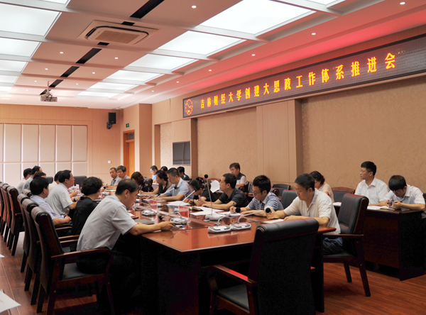 对于下一步推进学校创建“大思政”工作体系,周书记强调了三点意见:第一,充分研究,保证各项工作不折不扣贯彻执行;第二,分工协作,确保各项任务压紧压实;第三,充分重视,以高度的责任心做好学校思想政治工作。周书记希望各单位进一步创新工作思路和方法,充分调动广大师生的积极性,开拓进取,奋勇前行,开创思想政治工作的新局面,使学校思想政治工作者成为社会主义核心价值观的自觉传播者,大学生成为中国特色社会主义的坚定信仰者,不断增强广大师生的道路自信、理论自信、制度自信和文化自信,努力实现每一个人的“中国梦”。