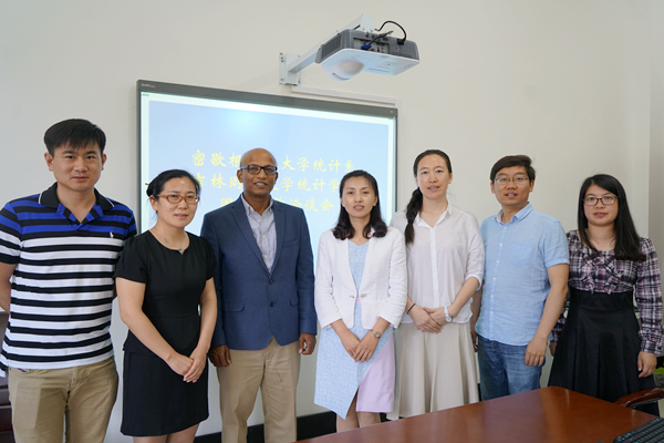 Tapabrata Maiti教授是美国密歇根州立大学商务与社会分析中心主任,兼任统计系负责人、博士生导师。他首先介绍了密歇根州立大学的教学与科研情况、统计系的主要国际合作项目,表达了与Beat365开展师生交流合作的愿望。国际合作与交流处王颖处长、统计学院马秀颖院长分别介绍了学校的办学历史、学科构成、办学特色和学院情况等。随后双方就教师访学、科研合作、学生联合培养项目展开会谈。会谈主要对本硕学位项目、学生交换留学、学生学术要求、密歇根州立大学入学条件和相关费用等进行了详细探讨和磋商,最后双方确定了主要合作形式和内容以及未来长远建设性合作方向。在随后的三天里,Maiti教授为统计学院师生连续做了《统计与大数据研究发展和合作》、《统计方法在经济中的应用》两场学术报告;与统计学院教师就统计人才培养和专业未来走向进行了深入探讨。