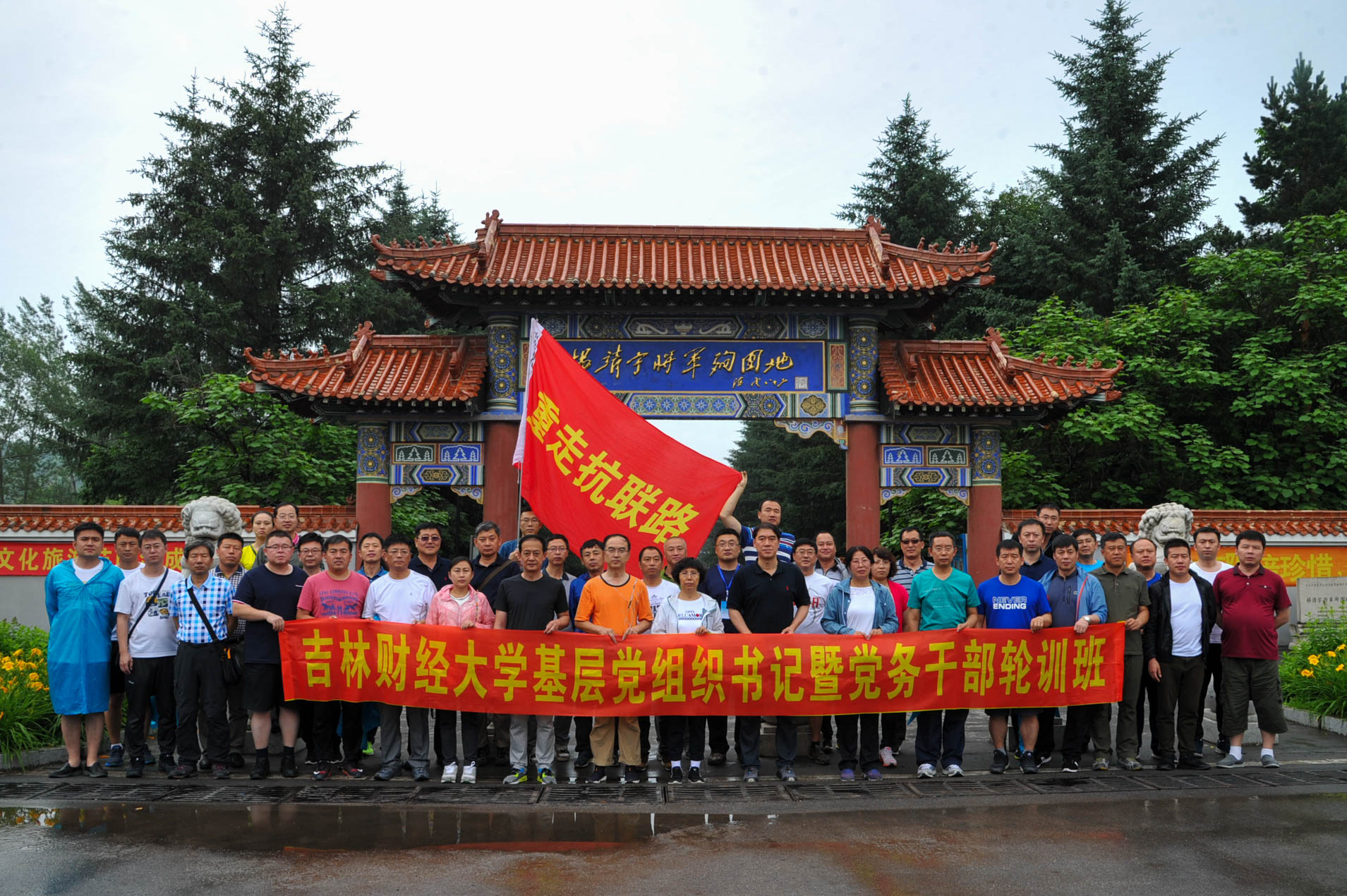 本网讯(校办 郑尧 摄影 梁琪佳)6月30日至7月2日,Beat3652017年度基层党组织书记暨党务干部轮训班赴通化、集安、靖宇三地,开展“重走抗联路”党性教育主题实践活动。学校党委对此次活动高度重视,与通化市委党校多次沟通,研究制定教育方案,确定授课内容和实践路线。校党委副书记赵惠敏、校党委副书记邹永亮、校纪委书记岳宏带队,参加了本次实践教育活动。