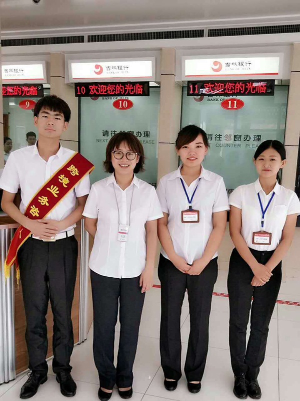 7月21日,40名同学赴长春浦发银行实习,经过企业文化、规章制度、服务礼仪方面的培训后,实习生被分配到一汽支行、西安大路支行、吉林大路支行等17个支行进行暑期实习。实习岗位有大堂经理助理、理财经理助理和个贷经理助理等。在实习单位指导老师的指导下,熟悉了网上银行、手机银行、理财产品和信用卡办理等业务,同学们还参与了宣传银行理财产品、信用卡和POS机等业务。在实习结束后,浦发银行举办了“实习总结暨联欢会”,同学们表演了银行大堂服务专题小品和其他精彩节目向给予帮助的浦发银行致谢。