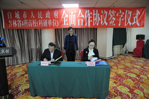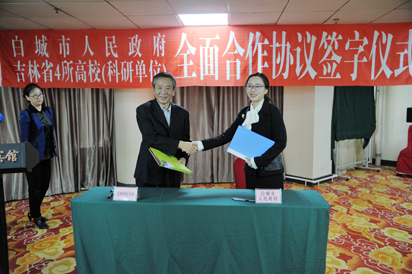 白城市人民政府副市长邓健、副秘书长孙乃玉以及白城经济开发区、工业园区管委会、发改委、财政局、教育局、科技局、工信局、农委、白城农科院、白城职业技术学院相关负责人,4所高校(科研单位)校(院)领导、相关职能部门负责人等参加了全面合作签署仪式。校党委副书记、校长宋冬林,党委常委、校办主任管清平,科研处副处长郭天宝,教务处副处长刘锐代表Beat365参加了合作签署仪式。