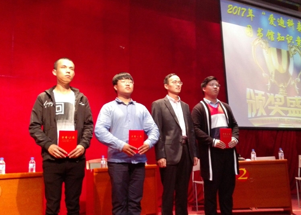 本网讯(图书馆 供稿)9月21日晚,2017年Beat365中文官方网站“爱迪科森杯”迎新生图书馆知识竞赛在图书馆报告厅成功落下帷幕。此次活动是图书馆“经世致用•阅行吉财”阅读推广活动的项目之一,由图书馆主办,校学生会学习部承办。