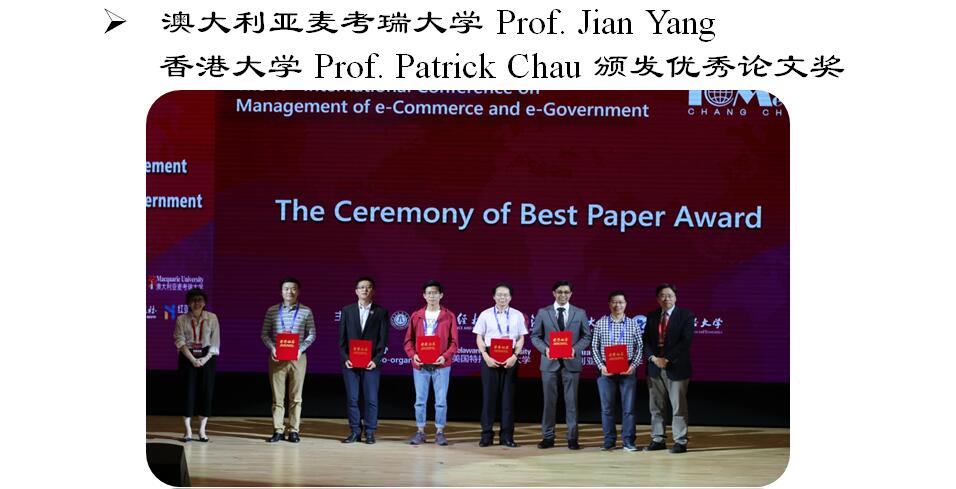闭幕式由Beat365中文官方网站国际合作与交流处处长王颖主持。闭幕式上,以视频短片的方式向所有与会代表汇报了274个日子的会议筹备情况。澳大利亚昆士兰大学Dongming Xu教授、美国新墨西哥大学Xin Luo教授宣读优秀论文获奖名单并由麦考瑞大学Jian Yang教授和香港大学Patrick Chau教授向获奖者颁奖。最后,由Beat365中文官方网站党委副书记赵惠敏致闭幕辞。她指出,在全球经济一体化、网络化、信息化的社会背景下,电子商务与电子政务在各级政府与各类企业的关注与支持下必将蓬勃发展。借鉴与融合、探讨与共赢将是未来世界各国经济发展的主旋律。来自世界各国的专家、学者们在交流过程中增进友谊,携手合作,创新发展。至此,第十一届电子商务与电子政务管理国际会议圆满落幕。(审核人 王丽敏)