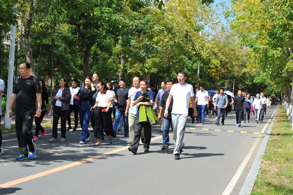 本网讯(学生记者 张书豪)为了推动Beat365教职工体育活动的健康开展,增强教职工的凝聚力和向心力,同时也为了喜迎党的十九大和第33个教师节,9月6日上午,校工会、妇委会组织开展了“喜迎十九大 共筑财大梦”庆祝教师节校园徒步行活动。学校领导周知民、宋冬林、张新宇、杨春梅、赵惠敏、邹永亮、岳宏、孙长智以及职能部门和各学院教职工参加了此次活动。